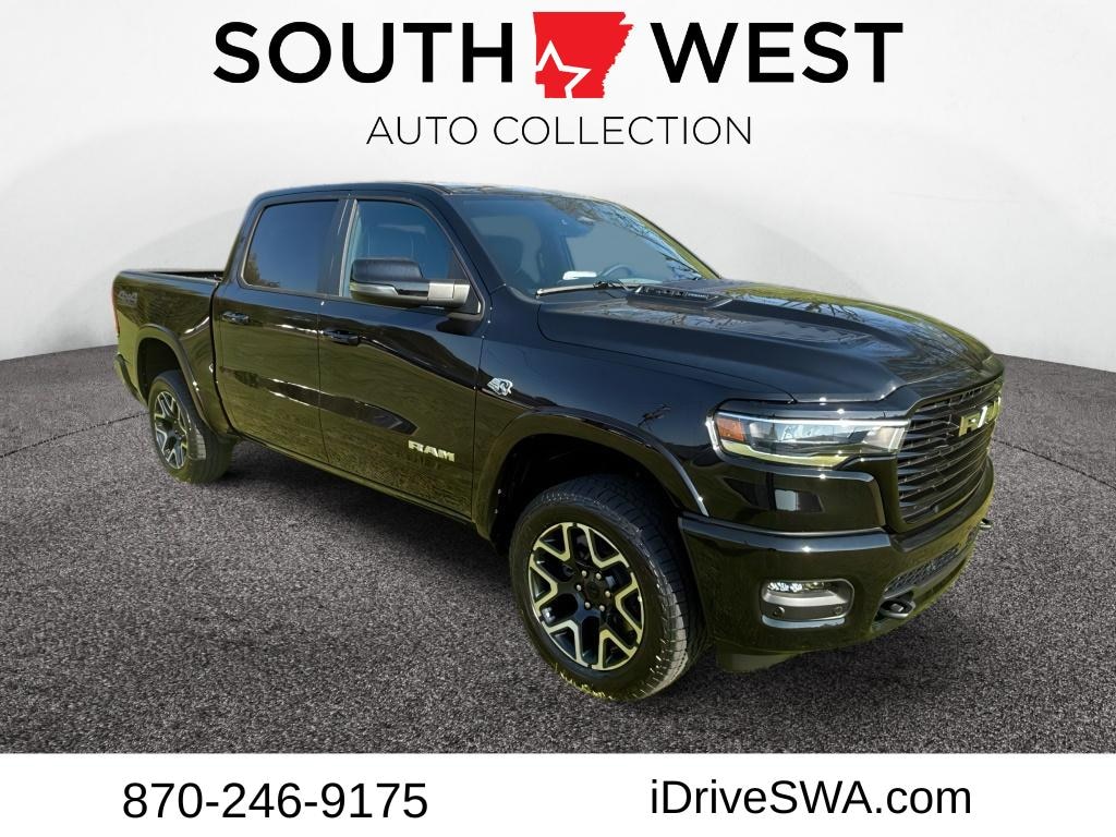 2026 Ram 1500 Laramie 4WD â" powerful capability and refined comfort meet in this standout pickup located in Arkadelphia, AR. Powered by a robust 5.7L V8 gasoline engine and four-wheel drive, this Ram delivers confident towing, smooth highway performance, and capable off-road traction. The Laramie trim adds premium touches throughout, including leather seats and a thoughtfully appointed cabin designed for long drives and daily demands. Stay connected on the road with Android Auto integration and a premium sound system, while XM Radio offers endless entertainment options. Advanced safety and convenience features like adaptive cruise control help reduce driver fatigue and enhance highway safety. Practical amenities and smart tech combine to make driving easier and more enjoyable, whether commuting or hauling heavy loads. This 2026 Ram 1500 Laramie balances rugged functionality with upscale appointments: durable bed capacity, responsive V8 power, and four-wheel drive for varied conditions, plus interior features geared toward comfort and connectivity. Located in Arkadelphia, AR, this vehicle is competitively priced and offers the best value available. If you're seeking a capable, luxurious pickup that performs on and off the road, this Ram 1500 Laramie is ready for test drives and immediate delivery. Contact us to schedule your appointment and experience this exceptional 4WD V8 truck today.